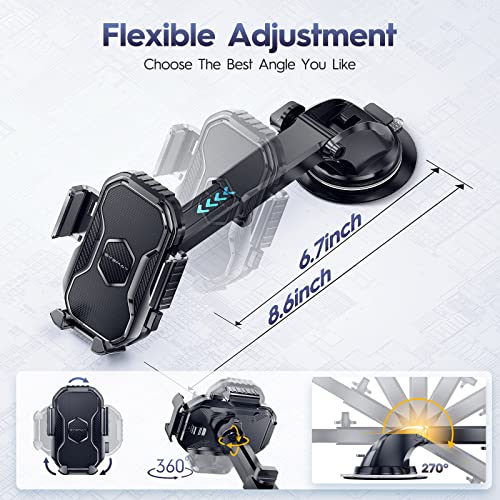 Eyemay Car Phone Holder Mount – [ Bumpy Roads Friendly ] Phone Mount for Car Dashboard Windshield Air Vent 3 in 1, Hand Free Mount for iPhone 14 13 12 Pro Max Samsung All Cell Phones
